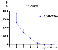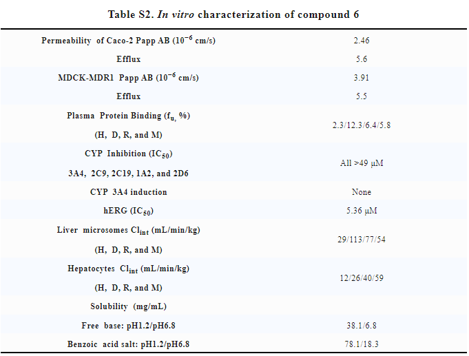 此外,YK-029A的體外性質良好(Table S2),對于多個CYP亞型沒有明顯的抑制作用,也無誘導效果。人體肝細胞代謝穩定,溶解度和透膜性良好,具有不錯的口服生物利用度。