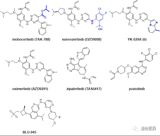 靶向表皮生長因子受體 (EGFR) 敏感驅動突變del19或L858R (21號外顯子),在非小細胞肺癌領域獲得了巨大的成功。自第一個EGFR酪氨酸激酶抑制劑(TKI)吉非替尼于2003年被FDA批準后,多個EGFR抑制劑(1代:吉非替尼和厄洛替尼,2代:阿法替尼和達可替尼,3代:奧希替尼)也相繼被批準,并表現出了良好的臨床療效。不幸的是,對于EGFR 20外顯子插入突變(EGFRex20ins)的非小細胞肺癌患者,其可選擇的治療方式有限,目前主要采用化療或免疫治療。此外,敏感突變的患者在使用第一代抑制劑治療時可能會因獲得性T790M耐藥而出現疾病復發,而在使用第一代抑制劑的患者中,T790M耐藥人群又占據了最高比例。鑒于EGFR突變的非小細胞肺癌患者面臨巨大的臨床未滿足需求,浦合醫藥希望找到一種新的分子來同時解決上述兩個難題。