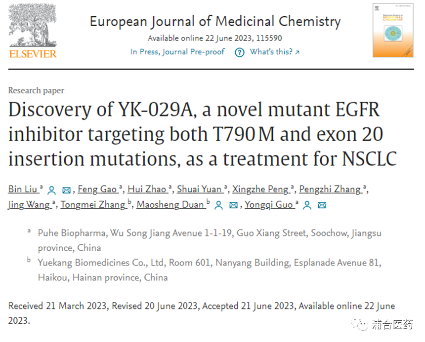 近日,浦合醫藥在歐洲藥物化學雜志 (European Journal of Medicinal Chemistry)公開了其臨床3期小分子EGFR抑制劑YK-029A的研發過程。