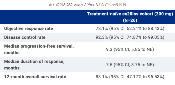 對26例初治的EGFR exon 20ins突變肺癌患者進行療效分析,其中96.4%為肺腺癌,IV期患者占85.7%。